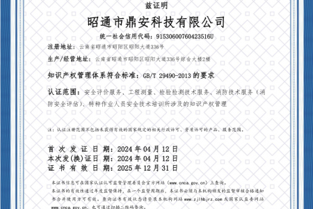 2003年11月10日,昭通市鼎安科技有限公司成立,初始主要從事第三方安全工程技術(shù)服務(wù),經(jīng)多年運(yùn)營,發(fā)展為多專業(yè)綜合科技平臺,為社會提供多種專業(yè)技術(shù)服務(wù)工作。 現(xiàn)公司注冊資金為1200萬元,公司法定代表人:毛衛(wèi)旭。公司主要業(yè)務(wù):安全評價、安全標(biāo)準(zhǔn)化評審、安全工程技術(shù)服務(wù);環(huán)境監(jiān)測、職業(yè)衛(wèi)生檢測、檢驗(yàn);法律訴訟及非訴訟服務(wù);司法鑒定、固定資產(chǎn)投資項目節(jié)能服務(wù);工程咨詢;工程測量測繪;安全教育培訓(xùn)等。是安全生產(chǎn)服務(wù)、安全教育培訓(xùn)機(jī)構(gòu),也是環(huán)境監(jiān)測和職業(yè)衛(wèi)生服務(wù)機(jī)構(gòu),同時也是綜合的檢測檢驗(yàn)、綜合科技平臺服務(wù)機(jī)構(gòu)。多年來為公、檢、法、司、軍、警、海關(guān)、仲裁、安監(jiān)、工礦商貿(mào)企業(yè)、社會團(tuán)體及個人提供多專業(yè)技術(shù)服務(wù)。